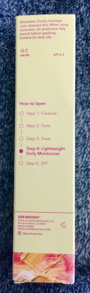 This vastly became a favorite lotion. It’s super light weight which is my favorite thing about it. It also has awesome ingredients in it as well, like avocado seed oil. The brand is Good Molecules. They have sunscreen options and other things as well. Which like I said, you can’t have enough sunscreen so I’ll probably get a sunscreen lotion from this company. They’re reasonably priced as well.
